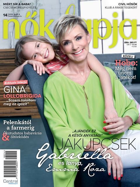 A Nők Lapja 2018 április 4-én megjelent számának címlapján Jakupcsek Gabriella és lánya, Emma Róza.
