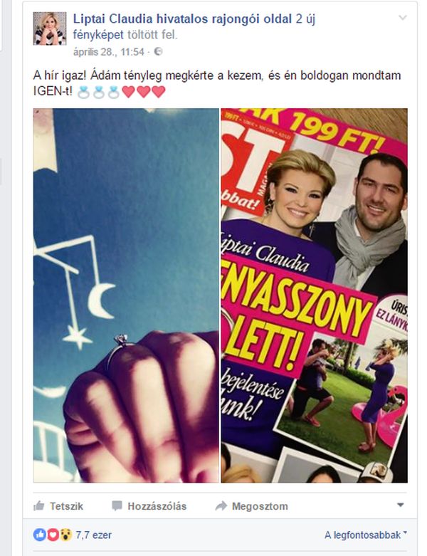 „A hír igaz! Ádám tényleg megkérte a kezem, és én boldogan mondtam IGEN-t!” – áll a műsorvezető tájékoztatásában, amit április 28-án tett közé.