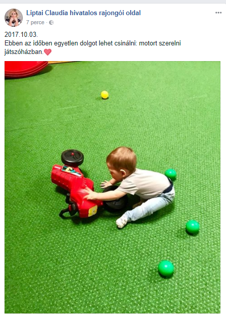 Ebben az időben egyetlen dolgot lehet csinálni: motort szerelni játszóházban. – tette hozzá a lenti képhez Liptai Claudia október 3-án.