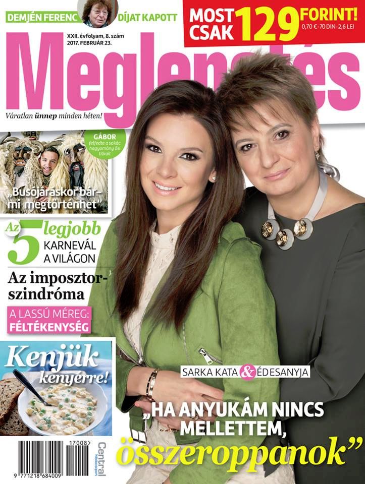 „Itt a friss Meglepetés! Ráadásul ezen a héten csak 129 Ft! Sarka Katával és édesanyjával a címlapon – már kapható az újságárusoknál!” – írják a lap ajánlójában.