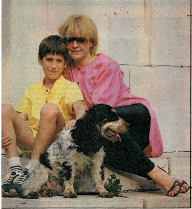 Zárai Péter fotóján Cserháti Zsuzsa – az akkor 12 éves Kirsiztiánnal – fiával és egy kutyussal látható.