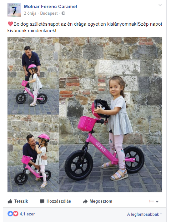 Caramel meglepte kislányát. A három éves Szofi egy új biciklit kapott édesapjától. Az ajándékot az énekese boldogan mutatta meg rajongóinak.